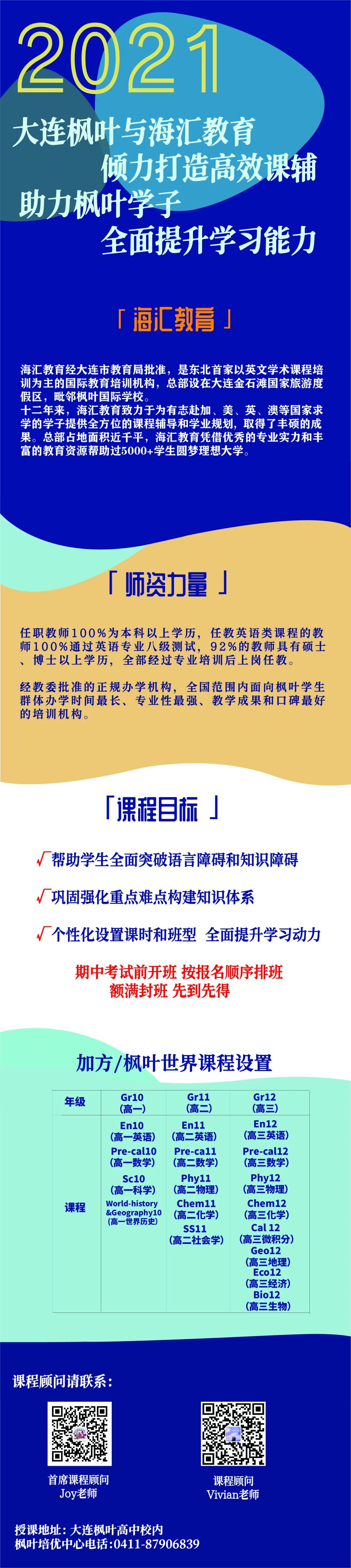 海汇教育和大连枫叶开启加方课辅导官方合作