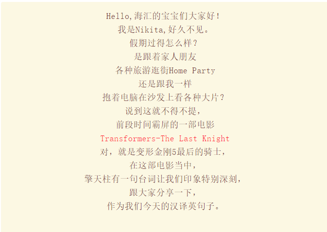 【翻译】变形金刚5—最后的骑士,等你跟着一起学英语